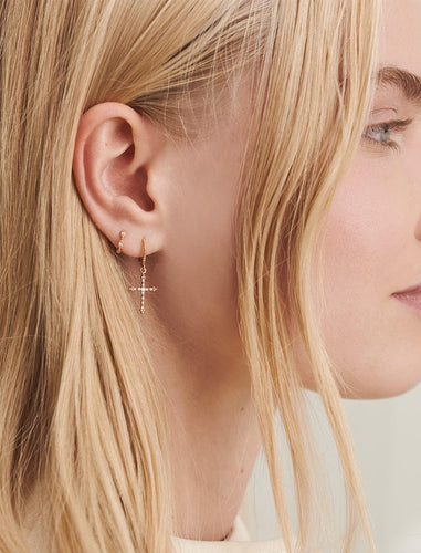 Cross Gold and diamonds tiny hoop