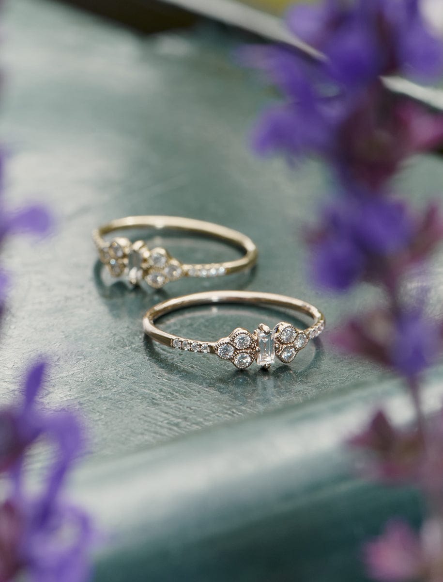 Emblème de la collection, le diamant baguette est au centre du design de cette bague, mettant en avant un style vintage cher à Marie Poniatowski.