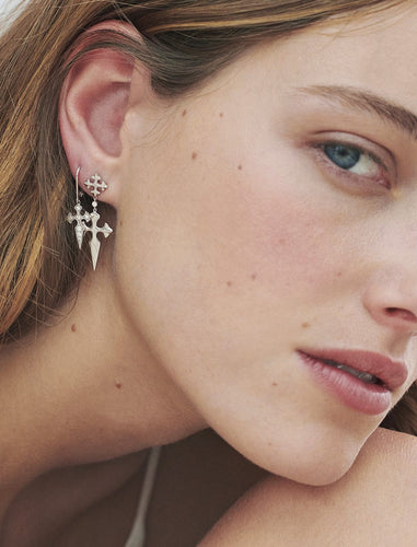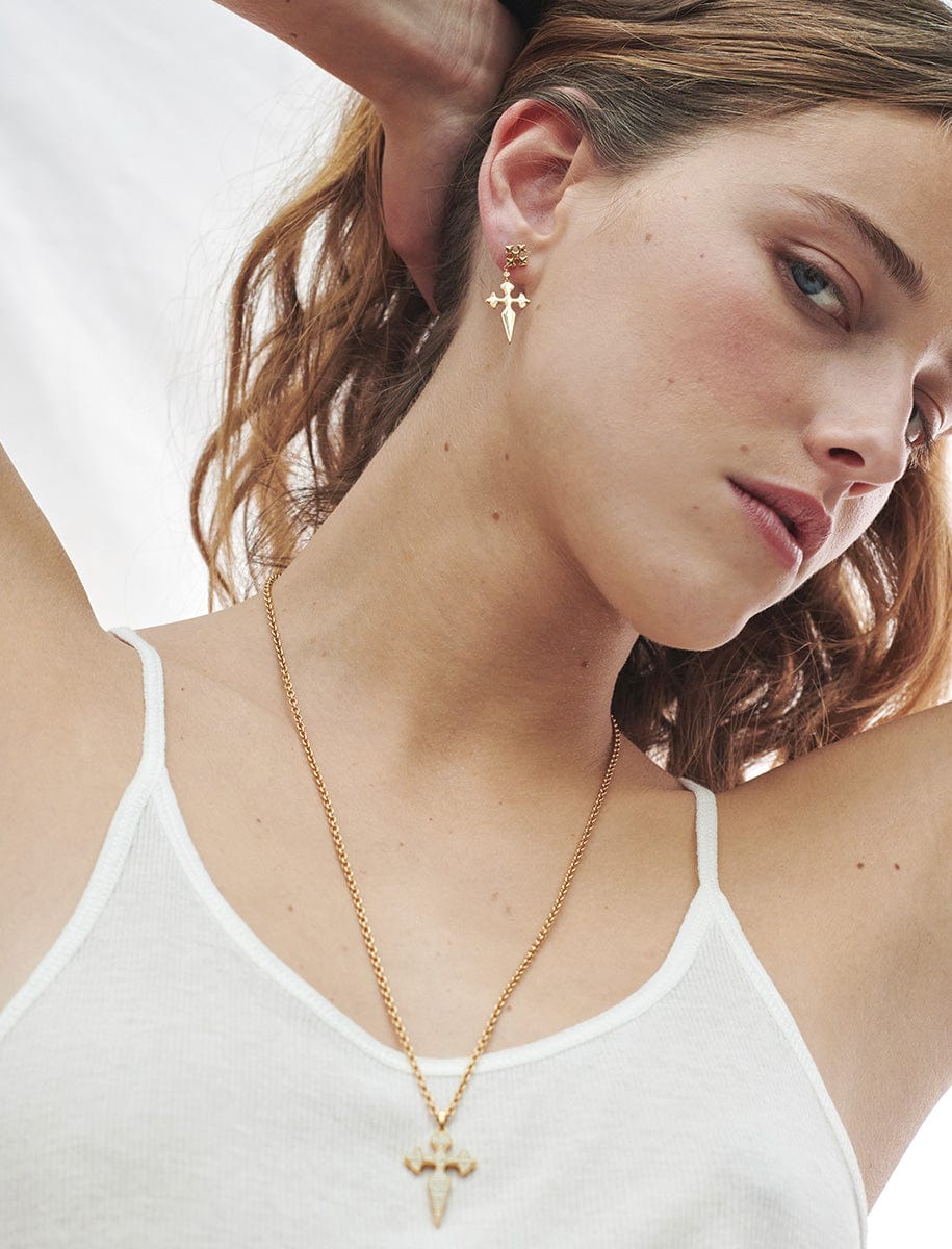 À l’occasion des 20ans de Stone Paris, Marie Poniatowski réinvente les modèles qui ont fait le succès de la marque. En version XXL, le motif iconique de la croix Blood Diamonds se porte à l’oreille en boucle unique.