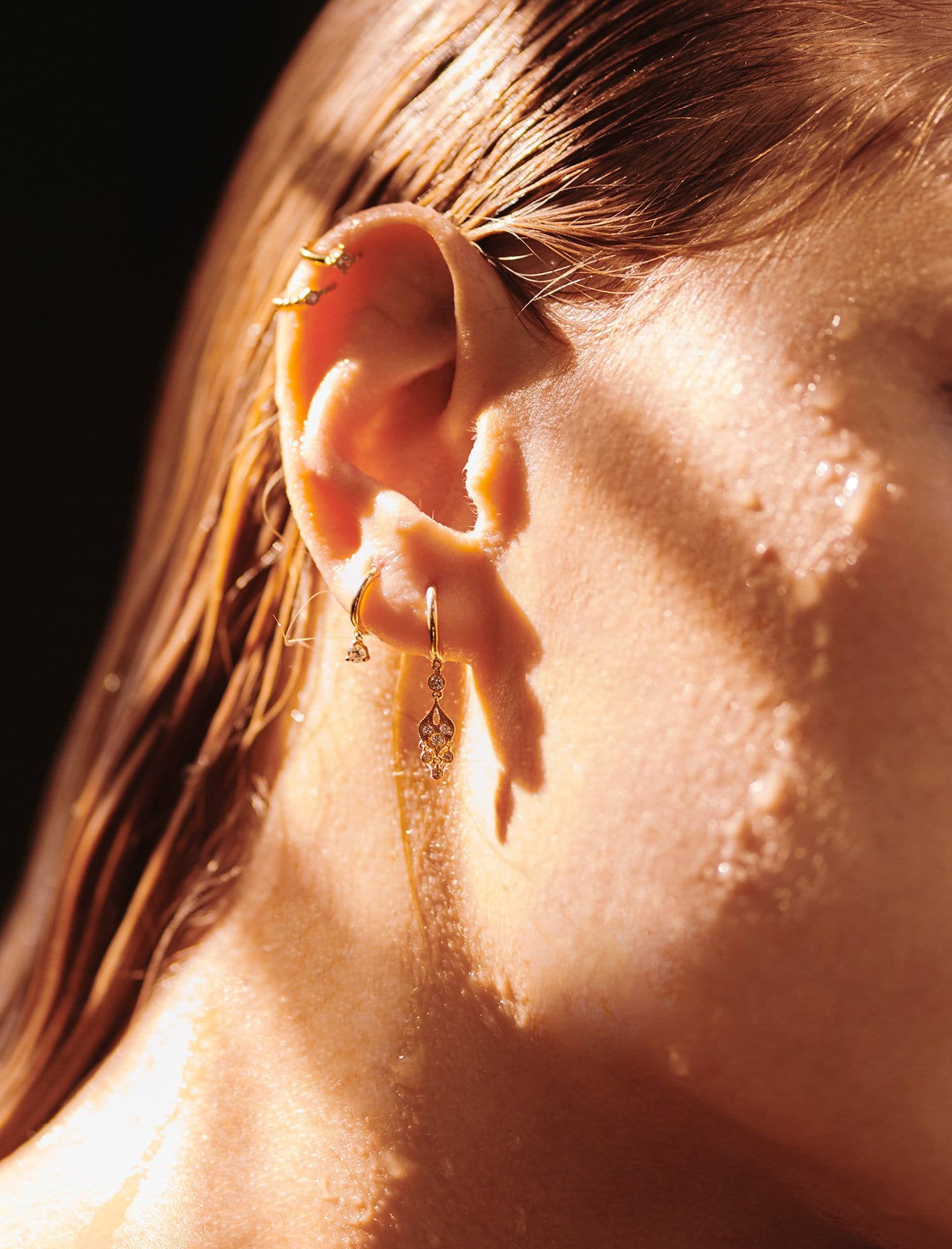 GOLD AND DIAMONDS TINY HOOP
