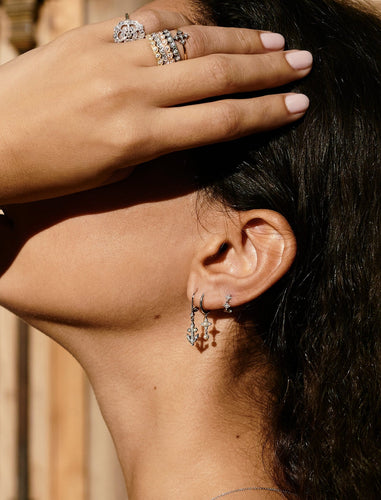 S'inspirant de l'architecture gothique, le motif de la collection nous plonge dans la passion de la créatrice Marie Poniatowski pour les croix. Au-delà de la symbolique religieuse, elle voit en elles un symbole de vie et de victoire.